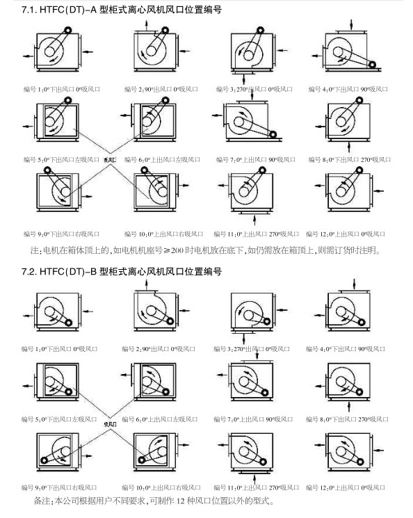 4. HTFC系列低噪聲柜式離心風(fēng)機(jī)箱為B型,電機(jī)裝在箱體內(nèi),用于通風(fēng)換氣。