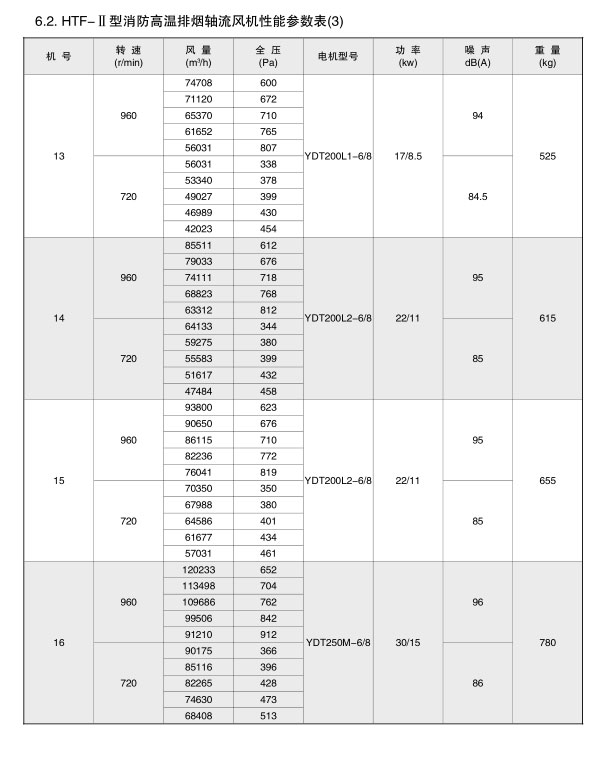 例:HTF—SX№5代表消防排煙軸流風機配雙速電機和消聲器,葉輪直徑500mm。