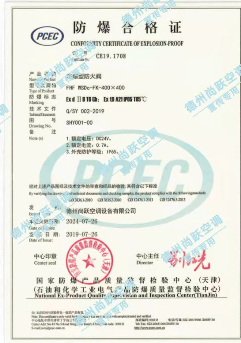 防爆防火閥用于性氣體或蒸汽混合物的危險(xiǎn)環(huán)境的工業(yè)建筑通風(fēng)、空調(diào)系統(tǒng)中,平時(shí)呈開啟狀態(tài),火災(zāi)時(shí)當(dāng)管道內(nèi)氣體溫度達(dá)到70℃時(shí),易熔片熔斷,閥門在扭簧力作用下自動(dòng)關(guān)閉,在一定時(shí)間內(nèi)能滿足耐火穩(wěn)定性和耐火完整性要求,起隔煙阻火作用的閥門。閥門關(guān)閉時(shí),輸出關(guān)閉信號(hào)。