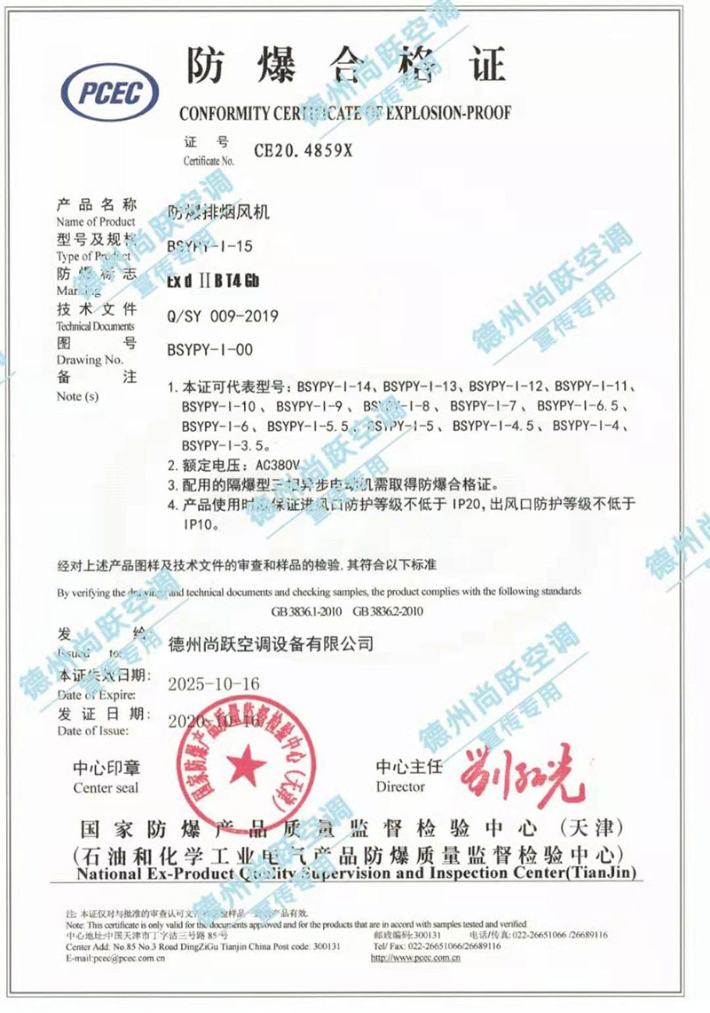 防爆軸流式消防排煙風(fēng)機(jī)主要用于性氣體或蒸汽混合物的危險(xiǎn)環(huán)境的工業(yè)建筑中,是廠礦企業(yè),石油化工等場(chǎng)所通風(fēng)排煙的理想產(chǎn)品,經(jīng)過固定滅火和耐火構(gòu)件質(zhì)量監(jiān)督檢驗(yàn)中心檢驗(yàn)合格,并按照規(guī)定辦理CCCF證件,現(xiàn)已下證,可滿足客戶使用及驗(yàn)收要求。